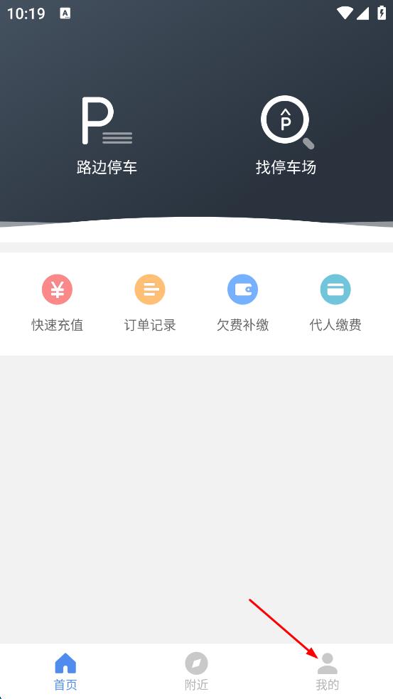 1、打开停车类软件,在界面底部找到“我的”选项,点击进入个人页面。