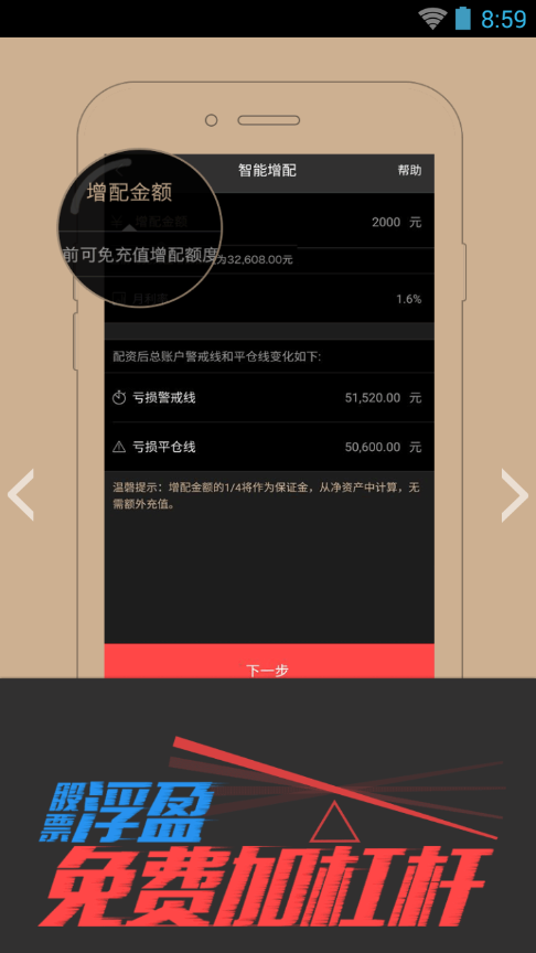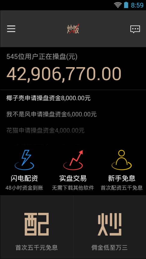 “炒饭”应用正式上线前,有超过400位股票达人被邀请参加了“炒饭”的测试,每日交易金额超过2000万。而在最近A股这轮猛烈的调整中,因为参与“炒饭”内测的投资者大部分具有丰富的杠杆经验、都在轻仓操作,并且在极端跌势时依然有大量非杠杆资金可用来补仓,所400位投资者中只有2位被强行平仓。陈婧说:“在使用杠杆时,只要不爆仓,就意味着有很大概率赚取超额收益。”