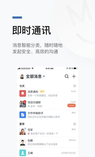 专注于组织工作领域,提供文字、语音、图片、视频、文件、在线文档等多种功能,让团队沟通所有需求集中产生在同一个地方并永久保存。