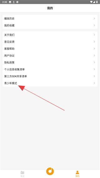 2、进入我的页面内,点击下方青少年模式的按钮。
