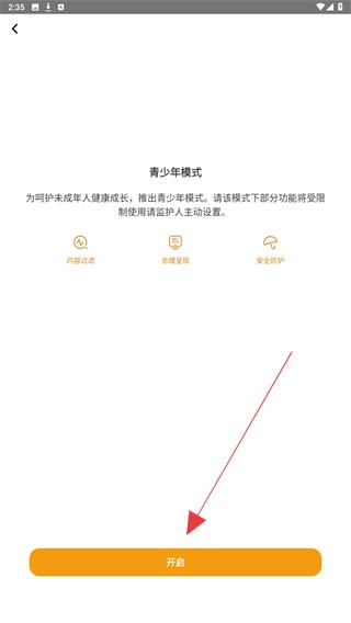 3、了解青少年模式后,点击开启的按钮即可完成。