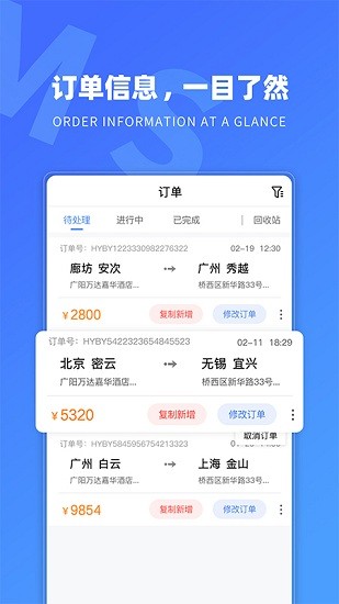 1、所有的订单都能记录在应用中,方便用户查看,了解运单的详情;