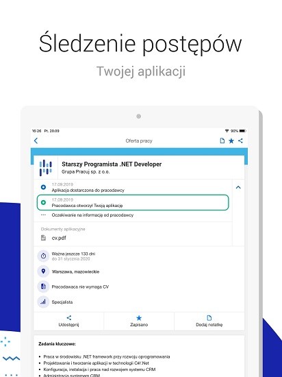 pracujpl给需要的朋友带来非常方便的手机找工作以及招聘软件,需要找工作的朋友可以在这里投递简历面试,真实的招聘信息加上丰富的功能以及简洁大气的界面等你来体验,公司也可以在这里发布招聘信息寻找自己需要的人才。功能多多值得一试。