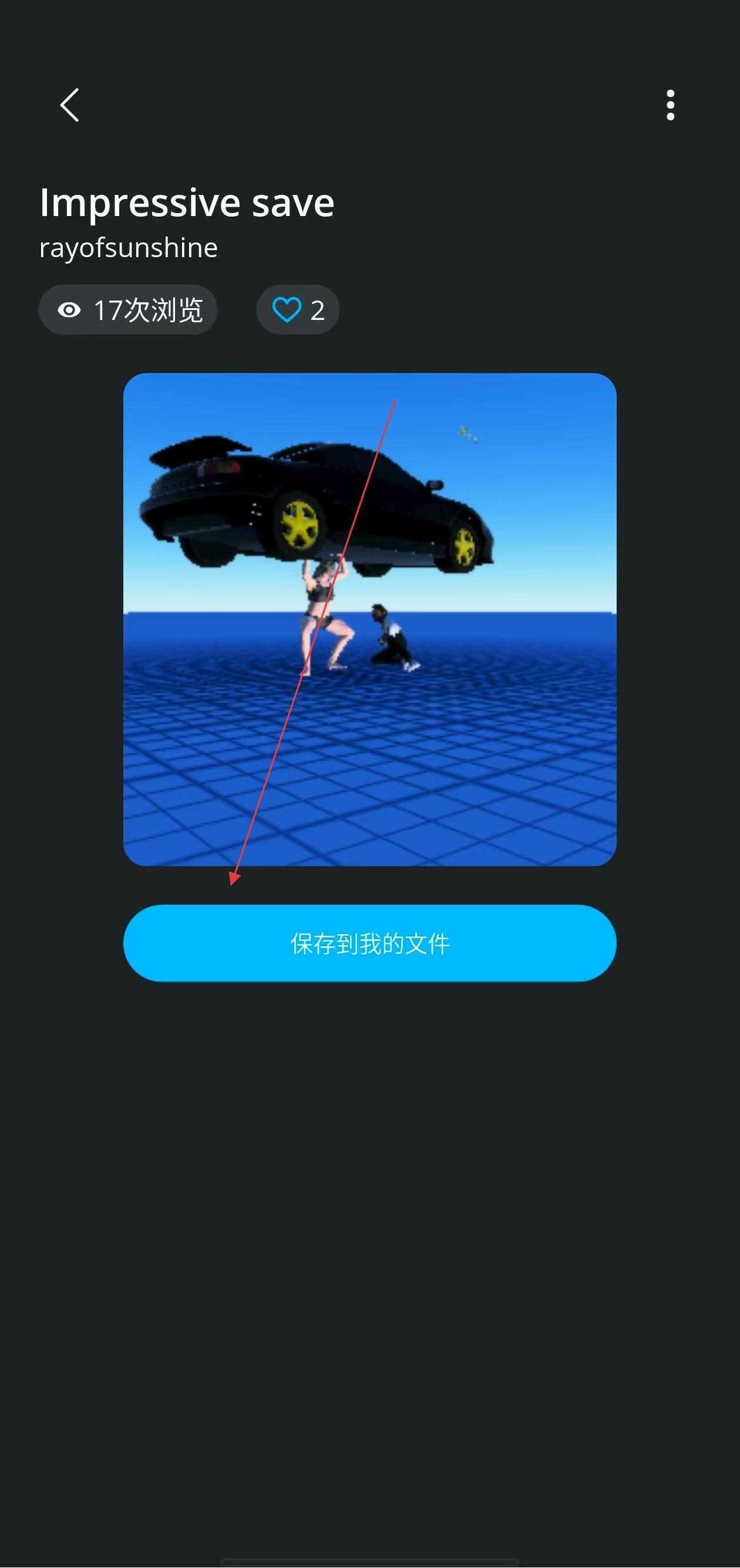 2、点击目标作品进入详情页面,在该页面下方找到保存到我的文件按钮并点击。