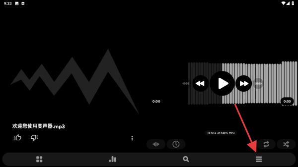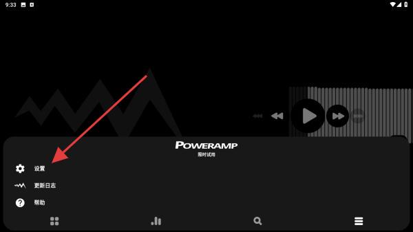 1、启动powerampAPP,在首页内点击右下角三个横线的图标。