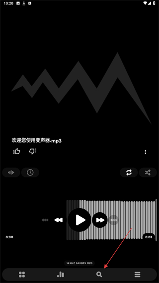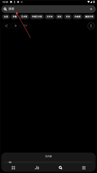 1、在Poweramp播放界面,点击底部导航栏中间的放大镜图标。