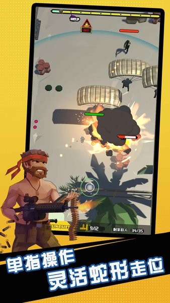 操控你的最强单兵,解锁大炮、机关枪、狙击枪、手榴弹等武器,穿梭于枪林弹雨之中解救被困的人质,第二滴血有更多随机地图关卡等你挑战,同时招募更多单兵队友,一起完成拯救任务。
