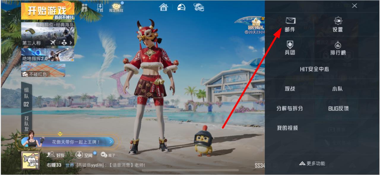 1、在游戏主界面点击右下角展开按钮,选择邮件选项。