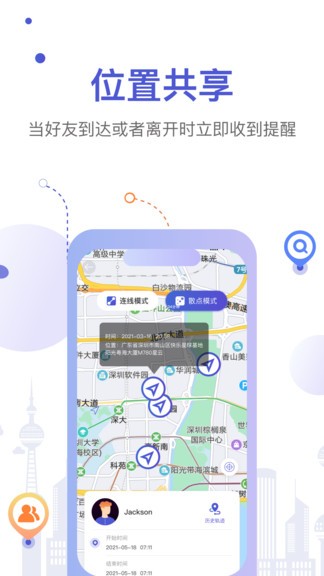 寻觅大师软件可以帮助你记录以往行程记录,当天去了哪里快速查看。在与对方数据连接后,你还能看到对方的行程轨迹,适用于孩子、老人的外出,时刻守护他们的安全。还支持位置共享,当外出找不到人时,就可以使用该软件来确定对方位置。