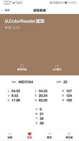 colorreader app是提供颜色识别的应用工具,操作简单易用,界面简洁。拥有有色阶表、图像配色分析分类等功能,采用蓝牙连接,可以手机拍照识别颜色,实时预览,匹配精准度高,快速满足大家需求,适合从事艺术设计工作使用。