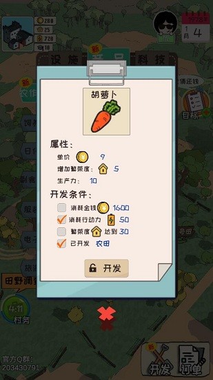 加油村长游戏里面玩家可以成为一名村长,,玩家需要带领村民发家致富,开发农田,学习种植更多的农作物,接取订单,研发科技,玩法非常的真实有趣,您需要规划好村子的致富路线,沿着目标前进;