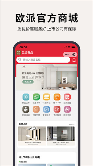 欧派有品app网上购物商城,通过平台用户可以进行报价的查询,了解香瓜的销售情况,丰富的商品信息让你可以姮好的了解建材商品,分类齐全线上购买,快来下载吧!