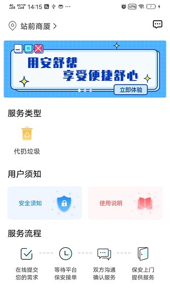 安舒帮app非常实用的物业管理平台,通过软件用户可以在线下单通过下单会帮助用户跑腿,如代扔垃圾,泊车挪车,取快递等等方便的帮助你解放双手,有需要的用户就来下载试试吧!