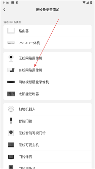 2、在添加页面,点击按设备类型添加选项,进入设备类型选择列表。