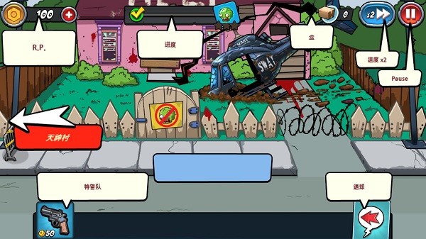 3、使用自己最为强悍的力量去迎接每一次的僵尸,统统的消灭掉。
