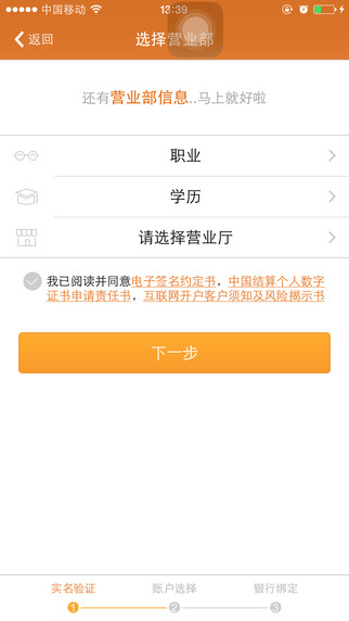 账户确认:风险测评、设置账户密码、选择三方存管银行。