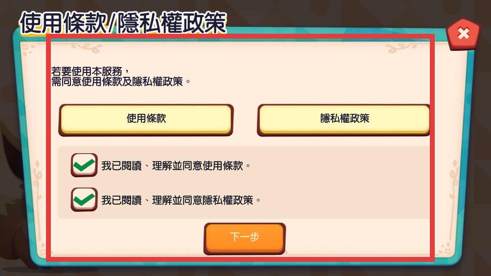 3、勾选我已阅读、理解并同意使用条款和我已阅读、理解并同意隐私权政策,再点击下一步。