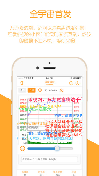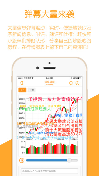 行情宝(弹幕行情宝)iPhone版是一款专门为用户设计的看盘神器软件,在这里你可以一边看盘一边发弹幕,还可以与炒股的小伙伴进行互动交流,你还在等什么赶紧下载吧!
