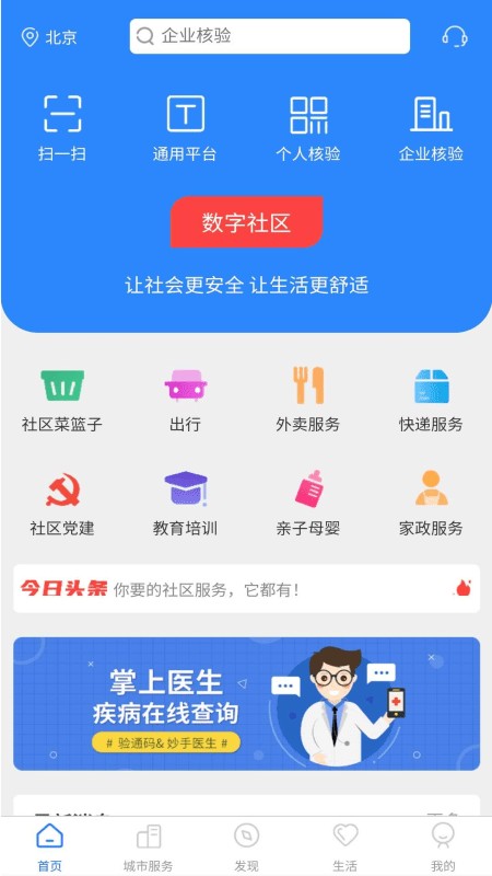 1、提供多种多样的社区生活服务,包括社区人员的身份验证功能、社区周边服务、快递、外卖、家政服务等;