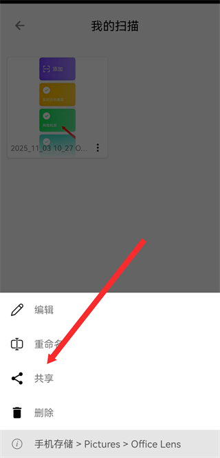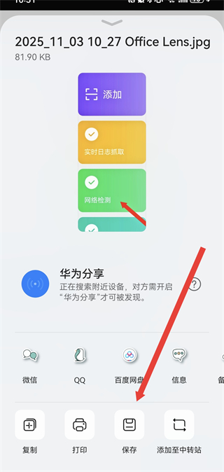 4、在共享操作界面中,可根据需求选择保存等功能,将扫描文件保存。