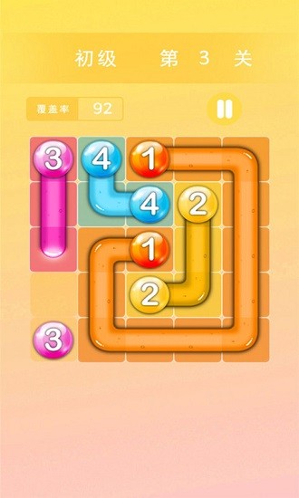 球球连线把页面中相同色彩的方块进行一一连线,使得连线不交叉,并填满所有空间。