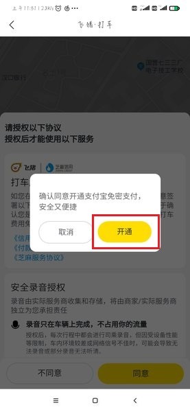 4、点击同意授权,用户还需要开通支付宝的免密支付