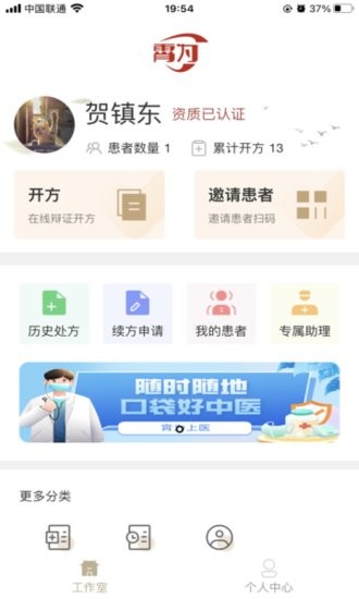 霄为上医是专为中医医师打造的在线问诊平台,用户注册账户后需要进行实名认证,可以添加自己的工作室,更加便捷的进行线上问诊,帮助更多患者恢复健康,每次开方的记录都能查看,便于后续根据患者的情况针对性提供处方。