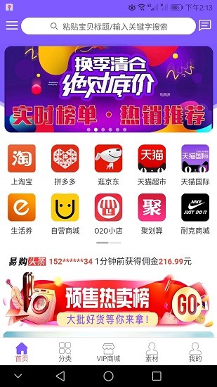 通过平台即可轻松在线领取各电商平台的商品优惠信息;