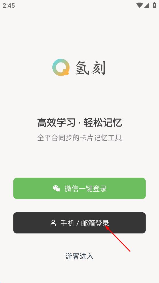 1、打开氢刻,在登录选择页面,点击“手机/邮箱登录”,进入账号登录页面。
