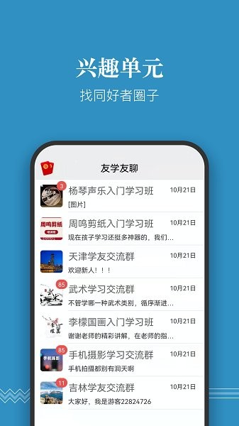 “友学友聊”里有精心制作的录播课程、专业名师的长期指点、社群形式的课程运营,为广大用户提供一个可以交朋友的兴趣交流空间