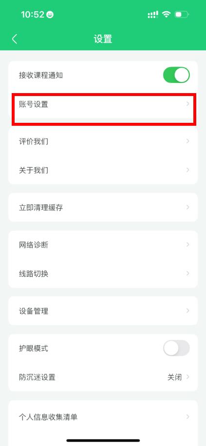 3、在设置页面里,点击账号设置进入账号设置界面。