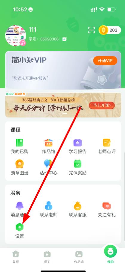 2、在个人界面中找到设置选项,点击进入设置页面。