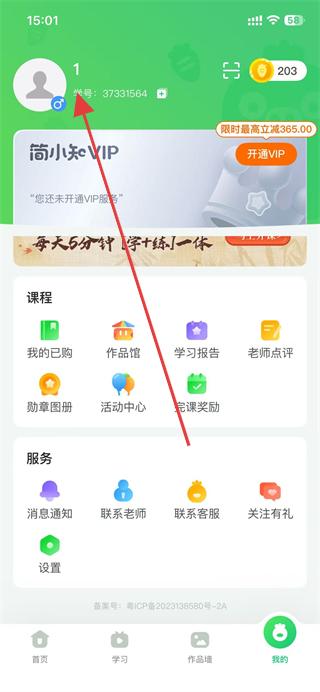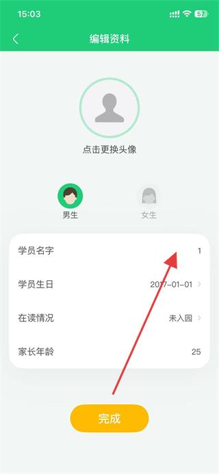 3、找到并点击上方学员名字选项,输入新的昵称。