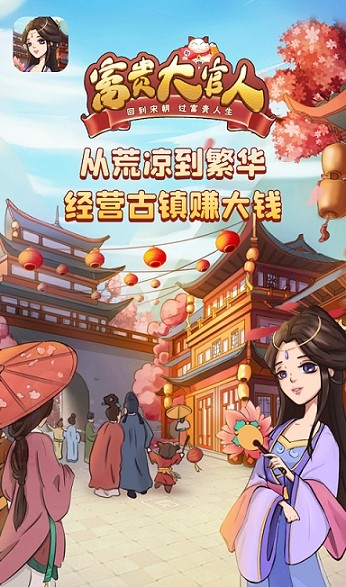 富贵大官人手游是全新设计提出的模拟经营手游,拥有着具有国风风格画面,还原真实的的宋朝主题场景,还设有丰富多样的游戏任务,大量福利红包奖励等你来领取,操作轻松又简单,带你从荒凉到繁华,经营古镇赚大钱,过富贵人生!