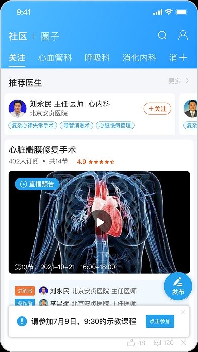 可以看到国内顶尖健康专家的案例直播,在线讨论,教学分享等精彩内容;