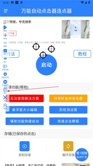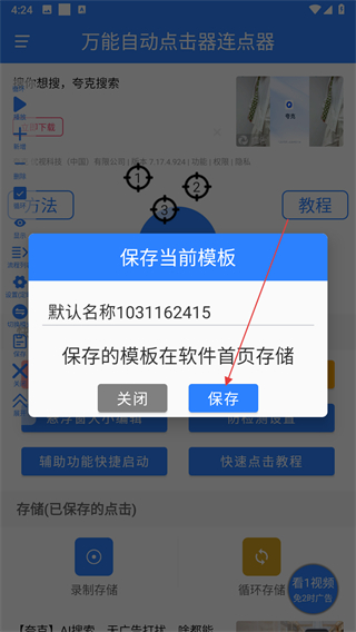 3、设置好点击位置等参数后,点击左侧菜单栏中的保存按钮。