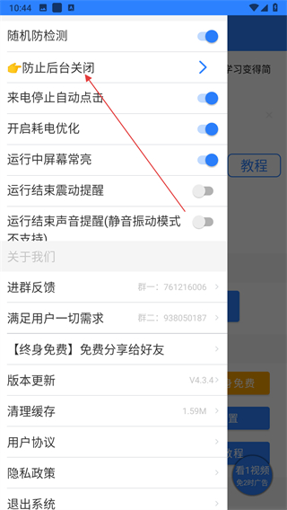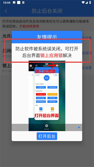 2、在弹出的菜单中,点击防止后台关闭选项。