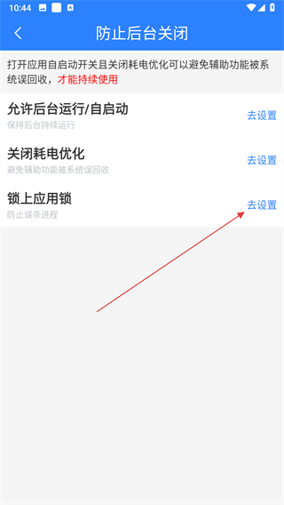 3、在防止后台关闭页面,点击锁上应用锁的去设置。
