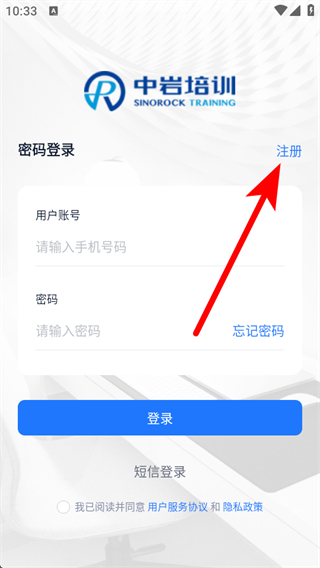 1、打开中岩培训,点击注册,进入注册信息填写页面。