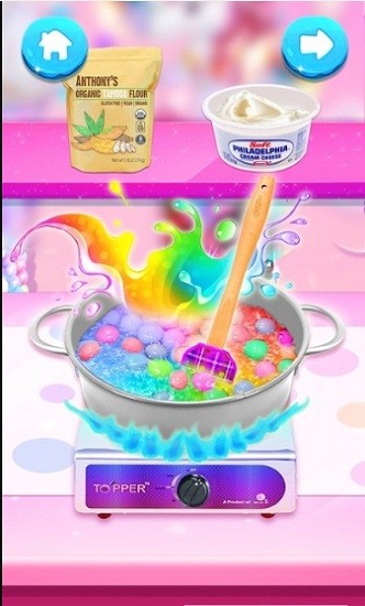 制作各种各样的冰淇淋:经典冰淇淋、独角兽珍珠奶茶、生日蛋糕冰淇淋圣代、银河冰棍、彩虹豆冰淇淋、银河星冰乐等等!