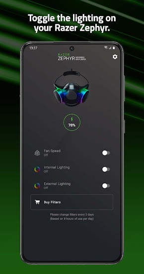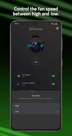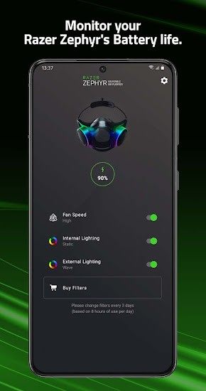 应用程序支持连接和调整Razer Zephyr mask的设置。