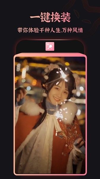 2、【一键换装】每天都会有热门视频素材更新,你只需动动小手指使用一键换装,就能成为热门视频的主角,别人都会为你点赞~