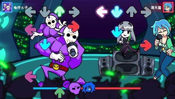 周五夜放克黑色星期五之夜是具有设计风格的音乐节奏游戏。现代美式动漫产生的浮夸造型艺术手法,收录了诸多节奏感很强的音乐,而两人比赛玩法则让手机游戏更为振奋人心,比拼谁的音乐节奏性更强,谁的反应力更快,也有超多的角色角色可以开启,用全新升级的品牌形象添加到猛烈的音乐比赛中吧!