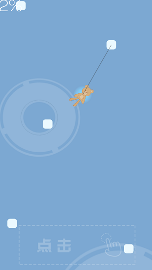 (1)物理运动仿真功能。游戏内分布许多固定锚点,当小人与锚点通过吊线相连时,小人可根据自身速度和角度围绕锚点进行圆周运动,当小人与锚点断开连接时,则进行自由落体运动,速度逐渐加快;