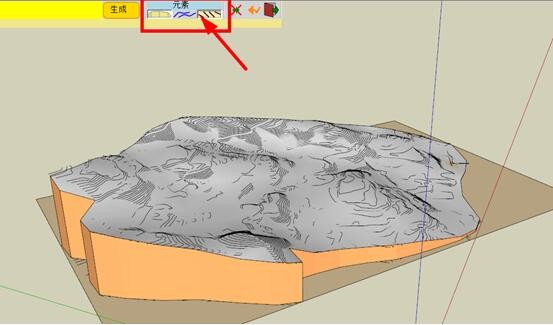 2、选择群组并点击生成地形工具图标 它会自动计算等高线之间的数据关系