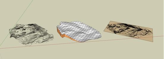 4、计算完成后 会生成虚拟地形 包括虚拟的基座 基座的底是以SU世界轴XY面为基准的