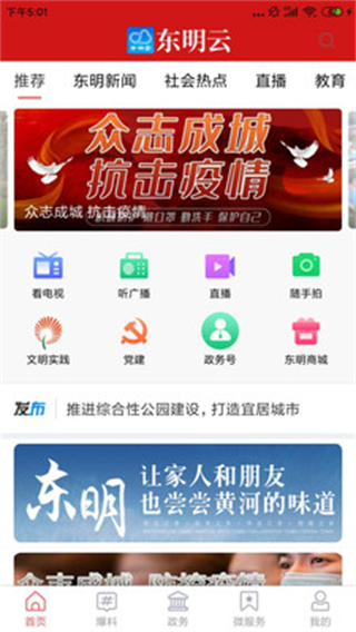 东明云app是由东明县融媒体中心重点打造的集新闻资讯、网络广播电视、便民服务、新时代文明实践等于一体的手机应用客户端,是本土最权威的新媒体平台。每天都有最新最热门的新闻资讯不间断的更新推荐,还有各项政务服务为你提供,线上就可以享受服务带来的便利。