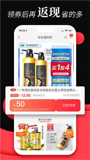 4、每天为用户提供优惠券,用户可以随时在线领券,购物更加的优惠。