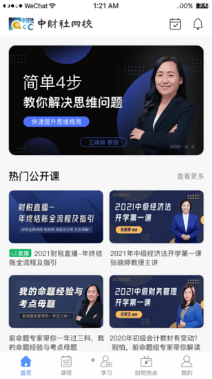 北京中财社是一款学习教育类型的app,用户在这款北京中财社app里面你可以自由的学习不同的模式,而且这里还有更多新的学习资料,足不出户就可以在线学习,每天还有很多的直播公开课可以为你分享,时间与地点都可以自己安排,各种资料都能找到。