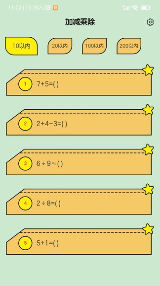 应用体积小、使用简便。随机生成10以内,20以内,100以及200以内口算题。指定口算范围随机生成口算题目。还可以选择加法减法乘法除法来设置。使用简单,操作小白,家长们用的更们省心。